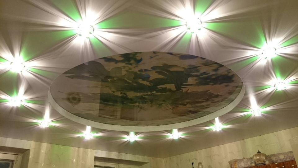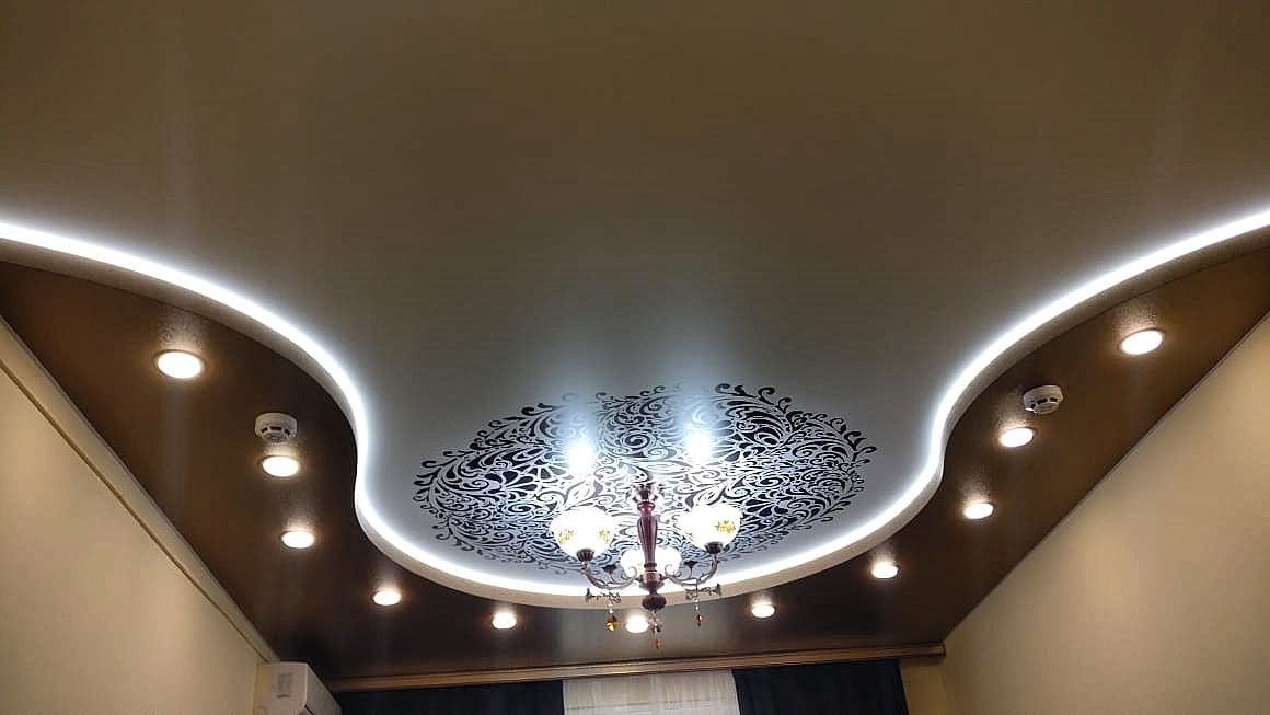 Специальная конструкция двухуровневых потолков позволяет встроить в неё светодиодную ленту, подчеркнув тем самым её форму и придать неповторимость Вашему интерьеру.